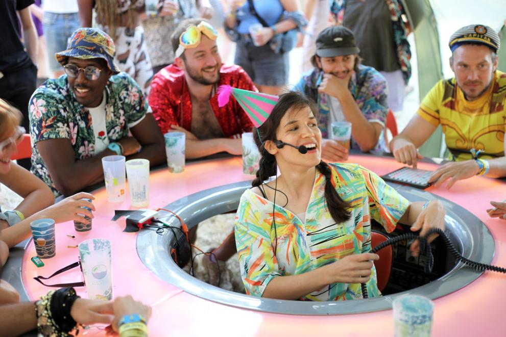 Talkaoke is a live, TV-style pop-up talk show by The People Speak art collective in London. The format is simple: the host sits in the middle of a glowing round table with participants sitting around the outside. There is no agenda and it is up to the participants to decide on the subjects - they can just grab the mic and air their thoughts! Discover new insights, hear the latest ideas and be ready for funny, deep, and unexpected conversations.